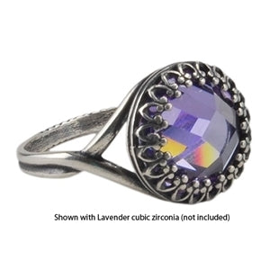 Antique Silver Plate Crown Setting Adjustable Crimp Ring - Round
