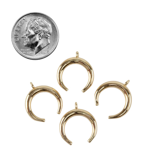 Brass Pendants - Crescent Moon/Double Horn - 18K Gold Plated - Pkg/4
