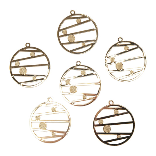 Brass Pendants - Round Planet - Pkg/6