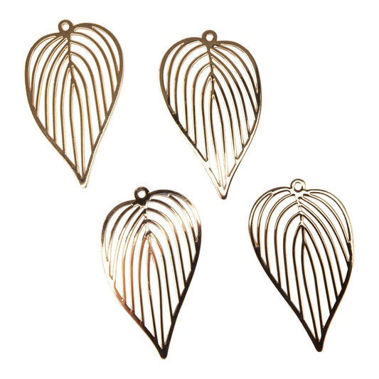 Brass Pendants - Leaf - 18k Gold Plated - Pkg/4