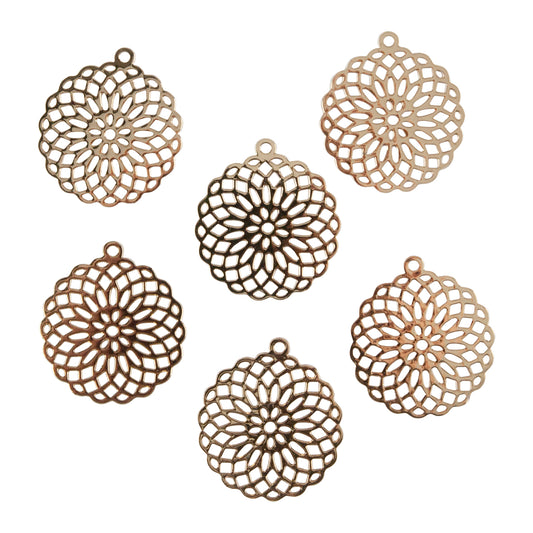 Brass Pendants - Spirograph Round - Pkg/6