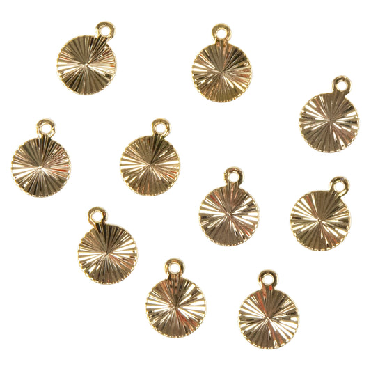 Brass Charm - Round Burst 18k Gold Plated - Pkg/10