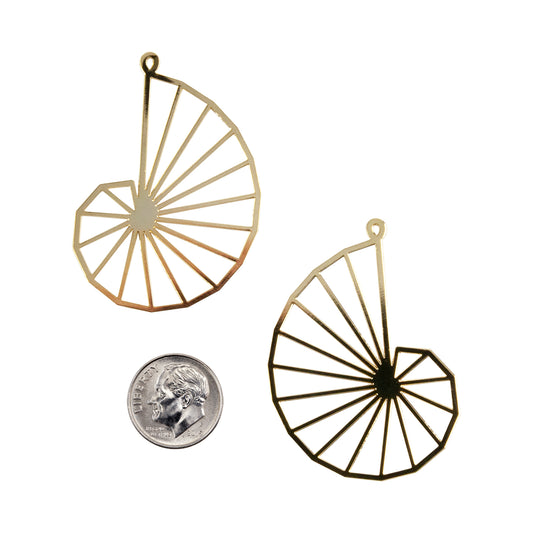 Brass Pendants - Spiral Shell - 18k Gold Plated - Pkg/2