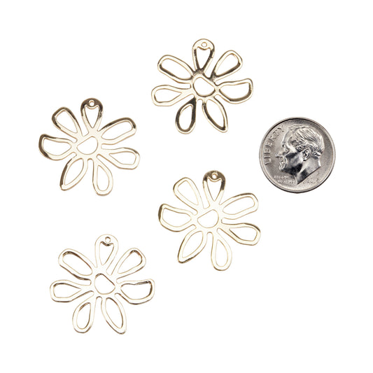 Brass Pendants - Flower - 18k Gold Plated - Pkg/4