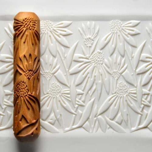 Large Wooden Hand Roller - Coneflowers