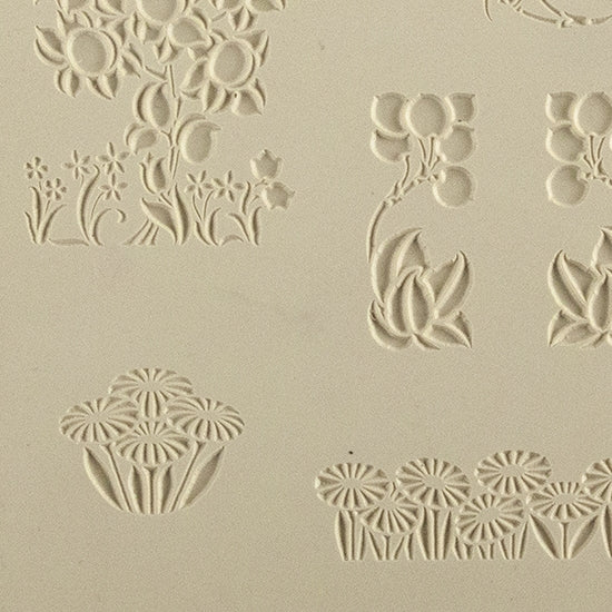 Our Arts & Crafts era inspired metal clay design elements are coordinating sheets of embossed designs, elements, and textures. Many designs include matching left and right elements. The embossed designs produced raised images that give the illusion of repousse and looks wonderful with patinas and surface coloring. Easily add gemstones and link the elements for an endless variety of coordinating designs.