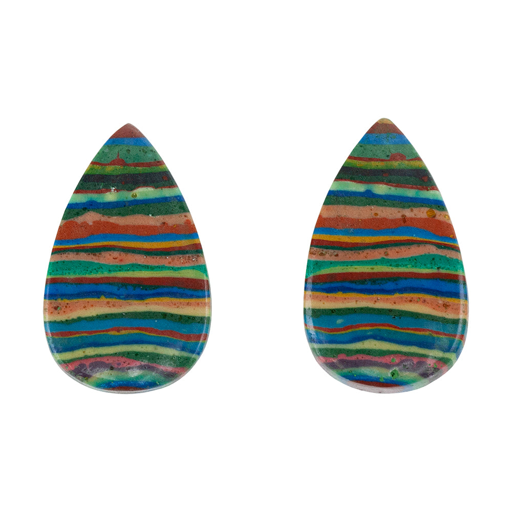 Rainbow Calsilica - Pear Cabochon 22mm x 14mm - Matched Pair