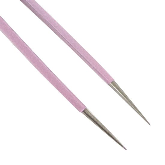 Stainless steel tweezers for picking up, handling and positioning those impossibly small findings, stones and components. Pink coloring makes it easy to pick out on your work bench.